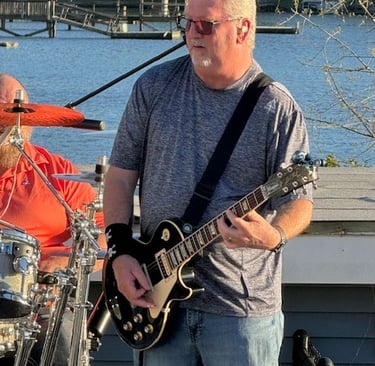 Another very long term musician, Red is originally from Florida, now living in High Point with his wife and daughter, who is also a musician in her own right. He keeps the low end straight with the bass, but he also sings harmonies on nearly every song we sing. Red has also provided a lot of the impressive sound equipment we use on every show and is the final word on getting the sound just right - especially if there is an issue that needs a quick solution. Smart and talented, his love for music shows in every performance.